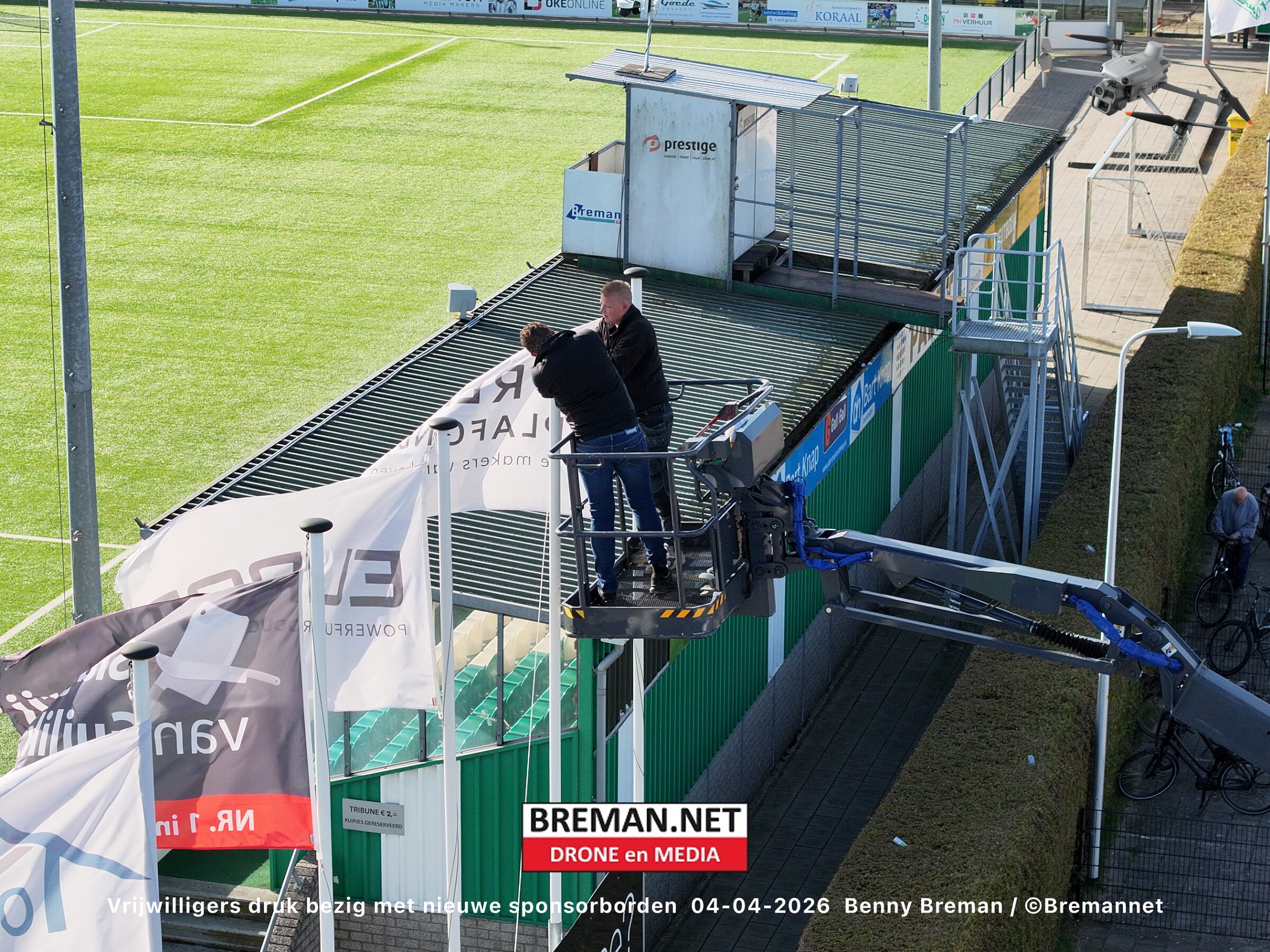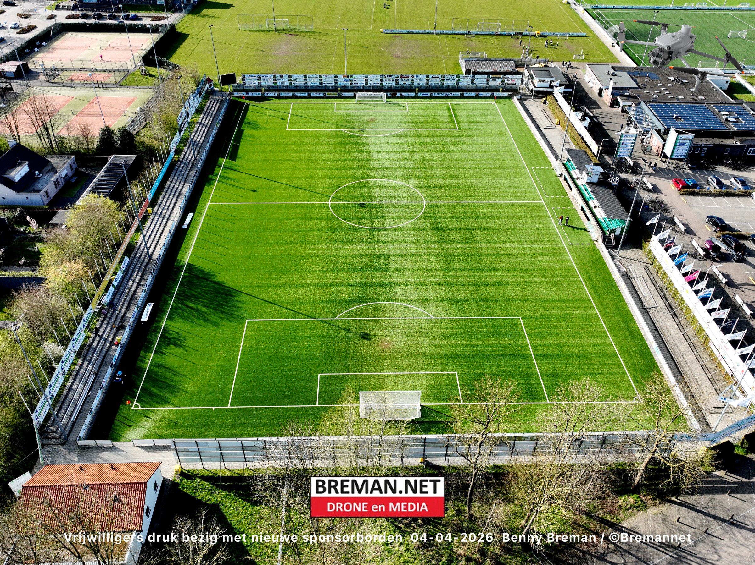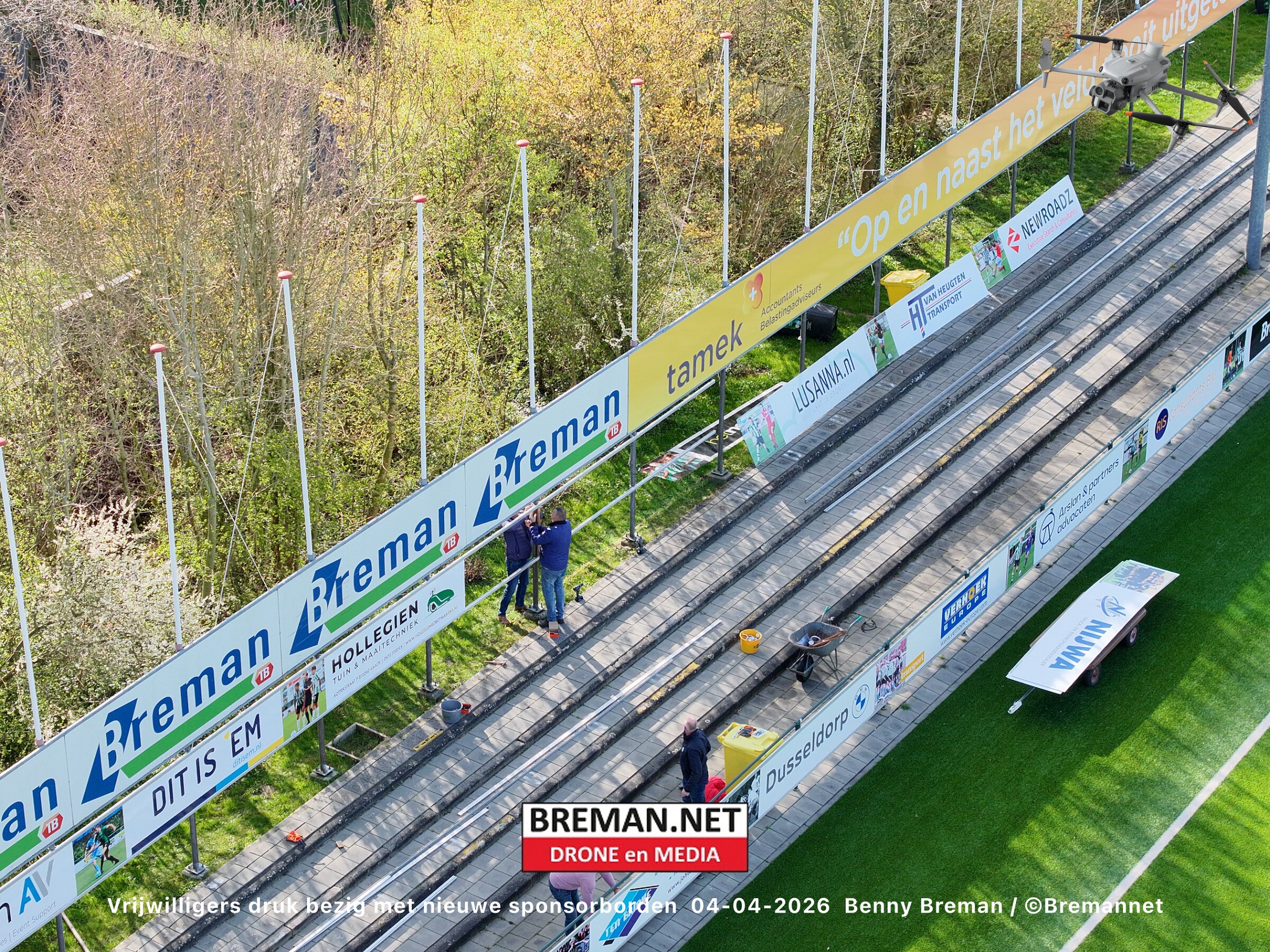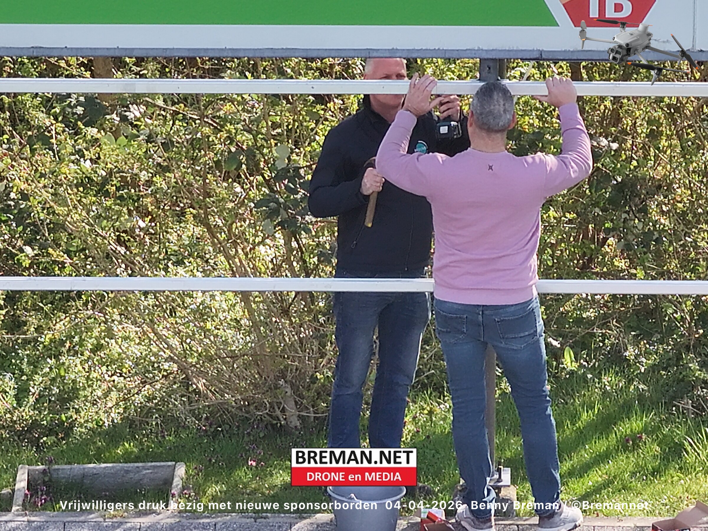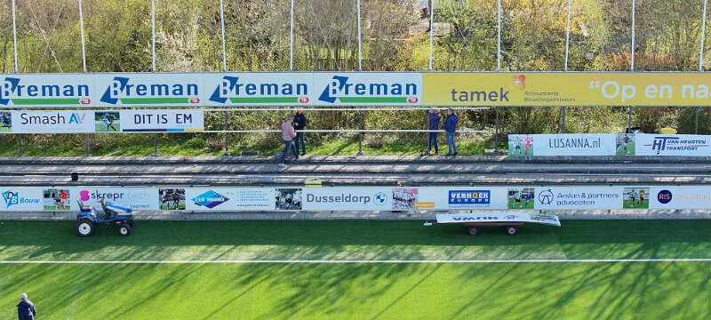 Ophangen sponsorborden bij SC Genemuiden