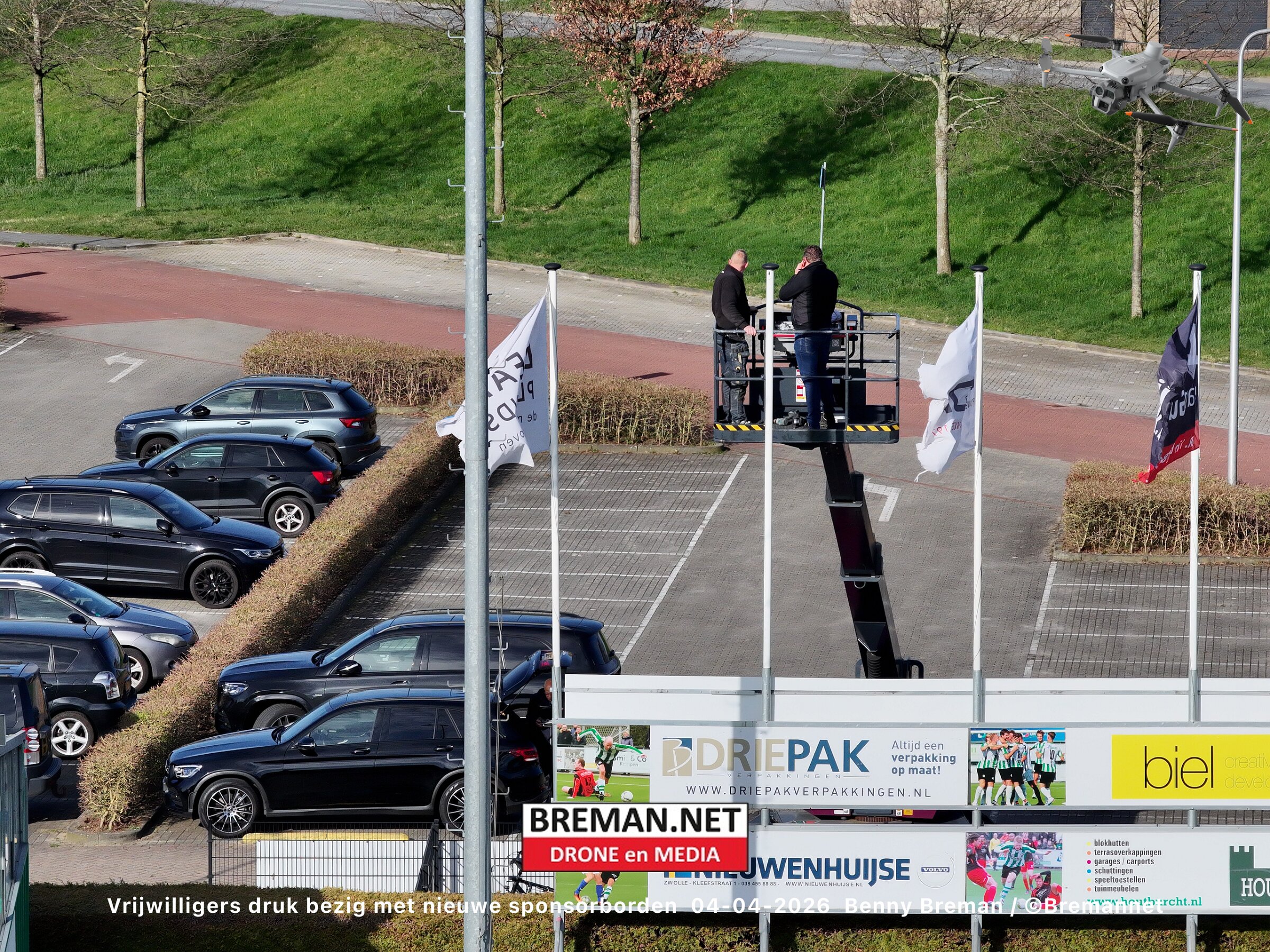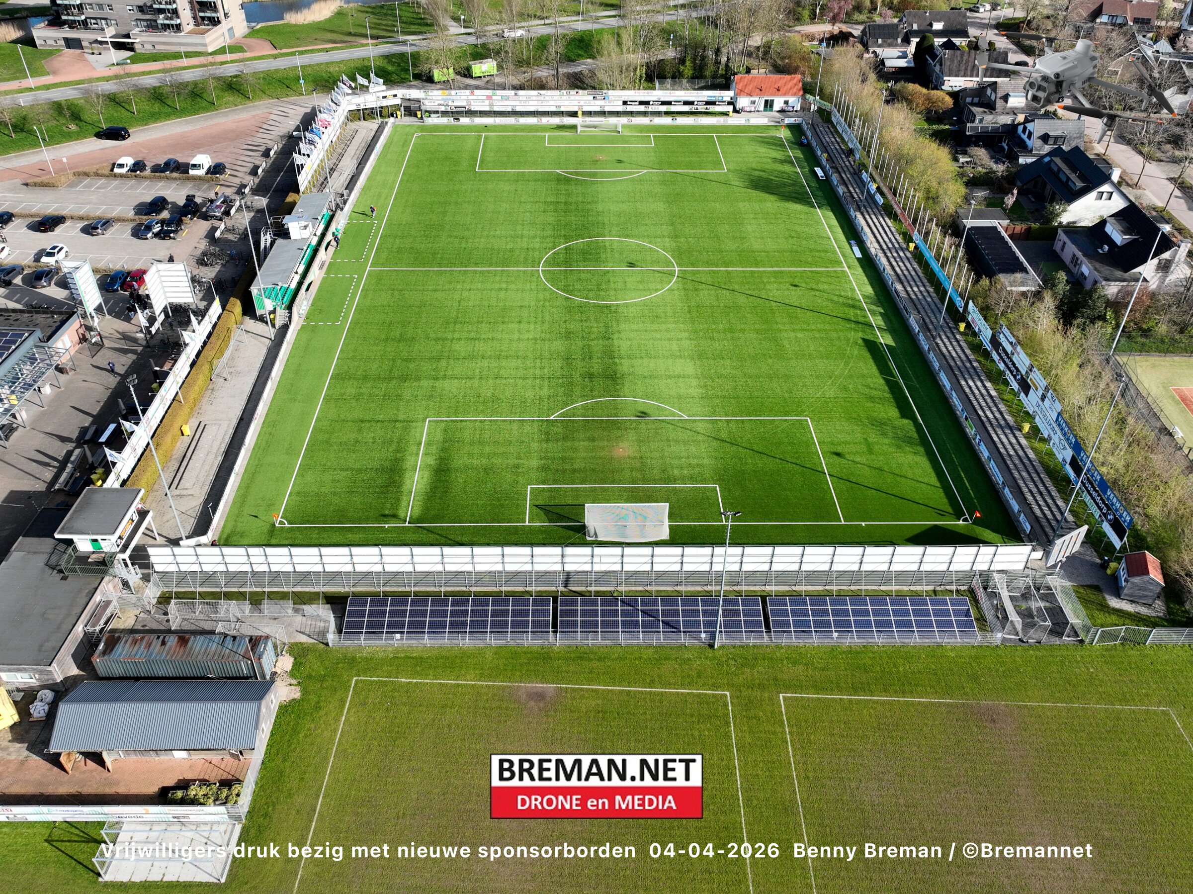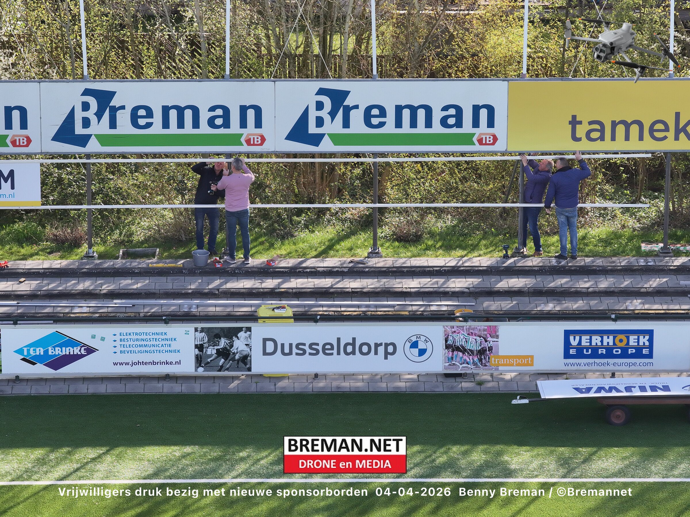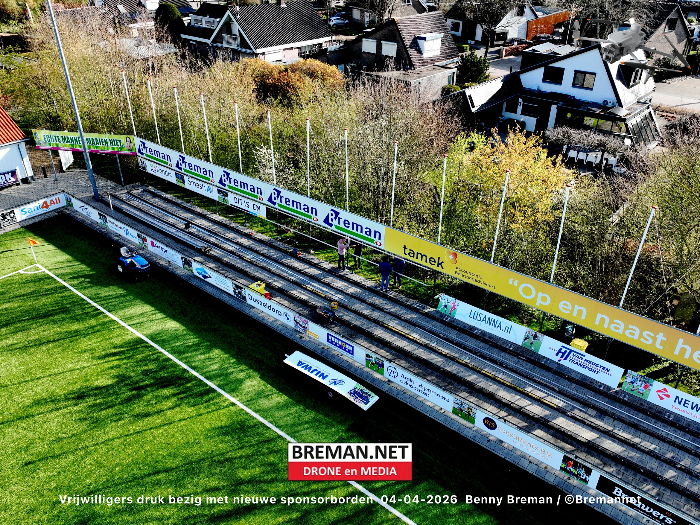 Ophangen sponsorborden bij SC Genemuiden