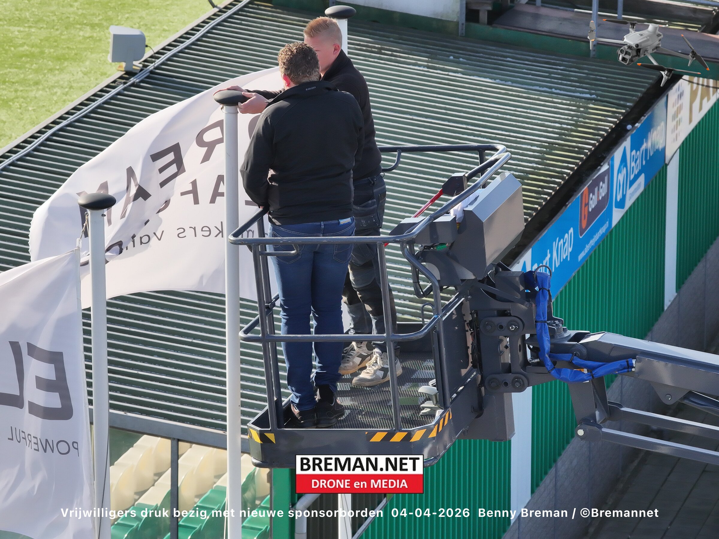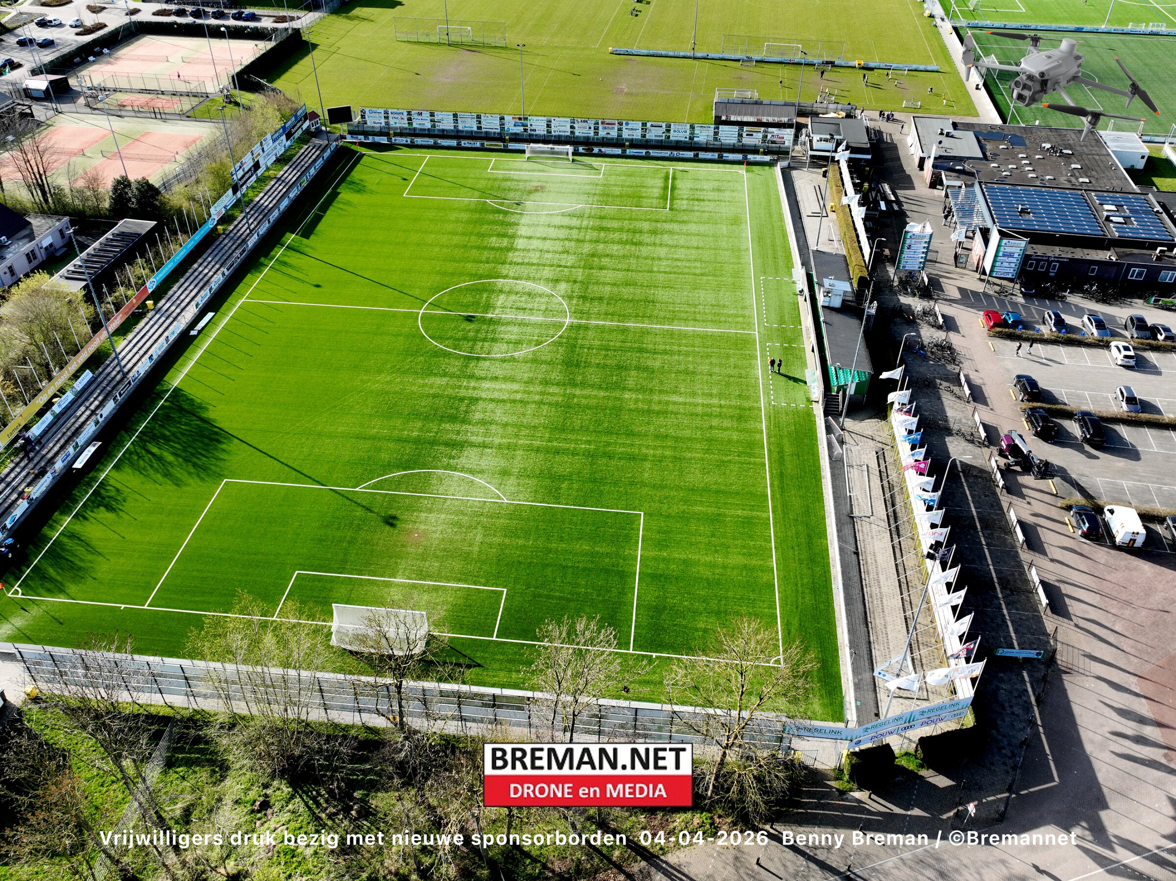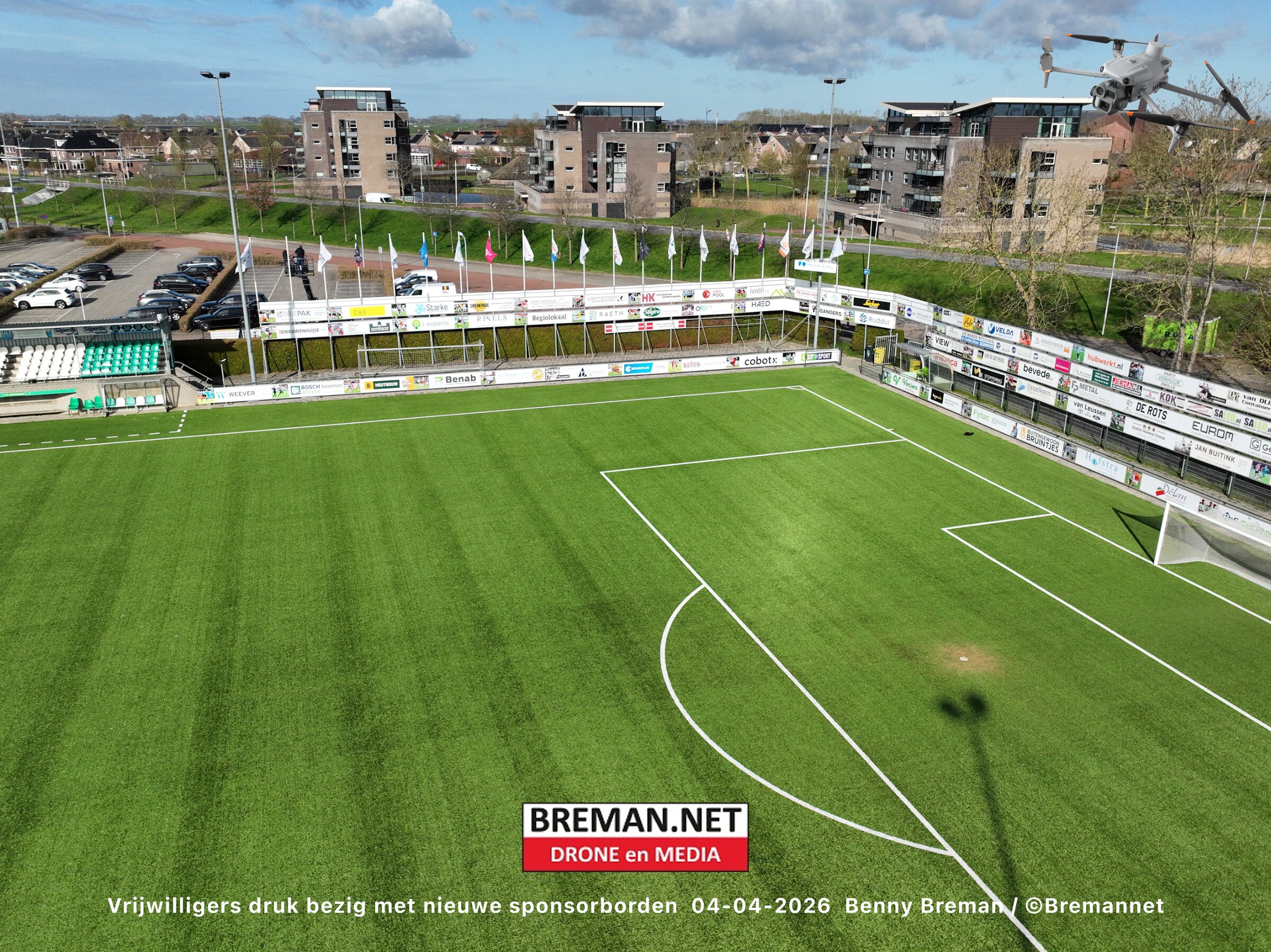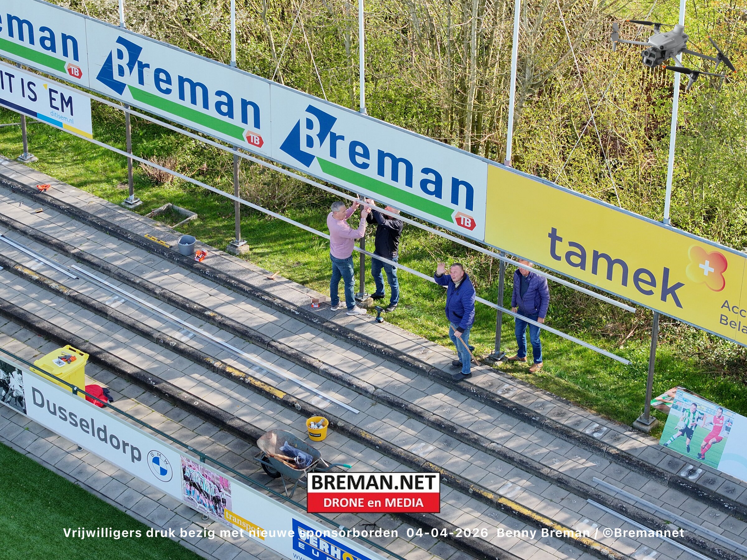 Ophangen sponsorborden bij SC Genemuiden