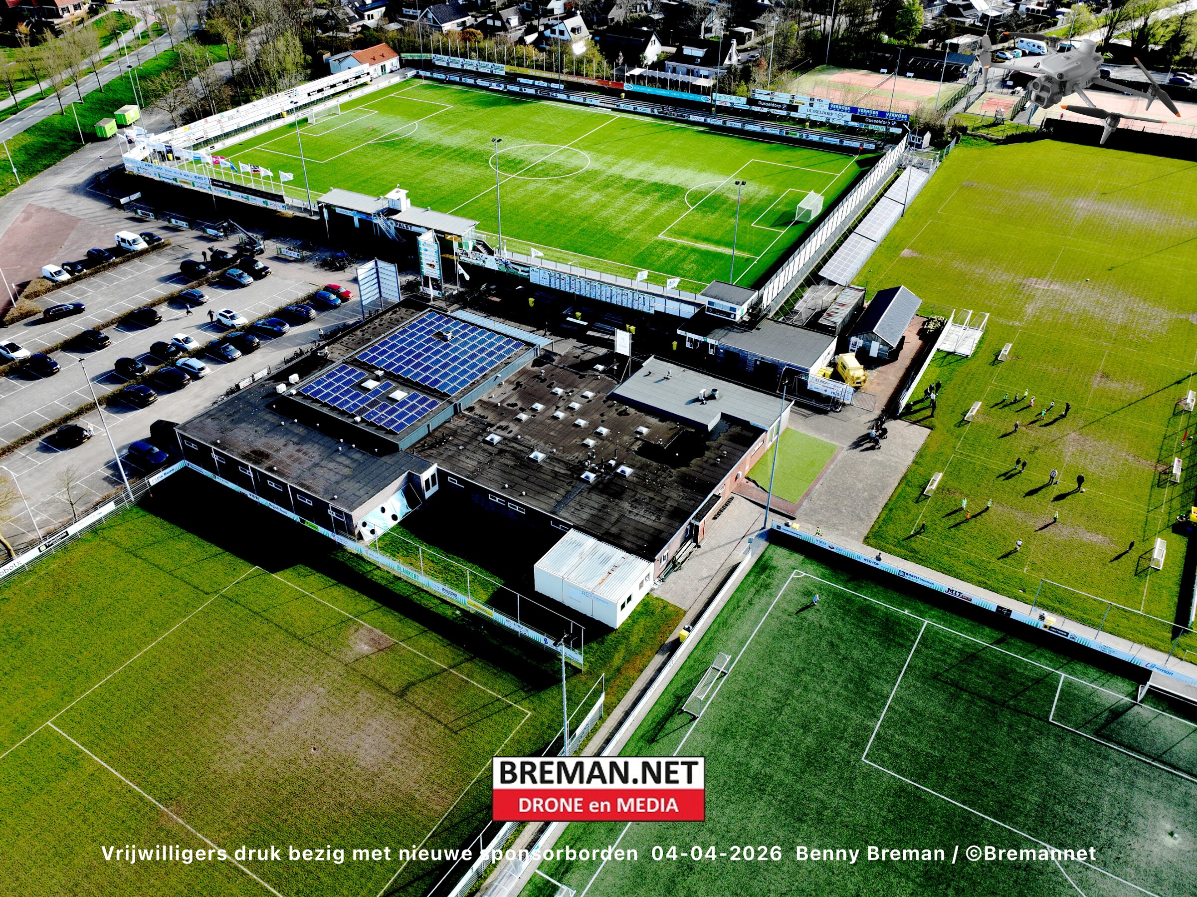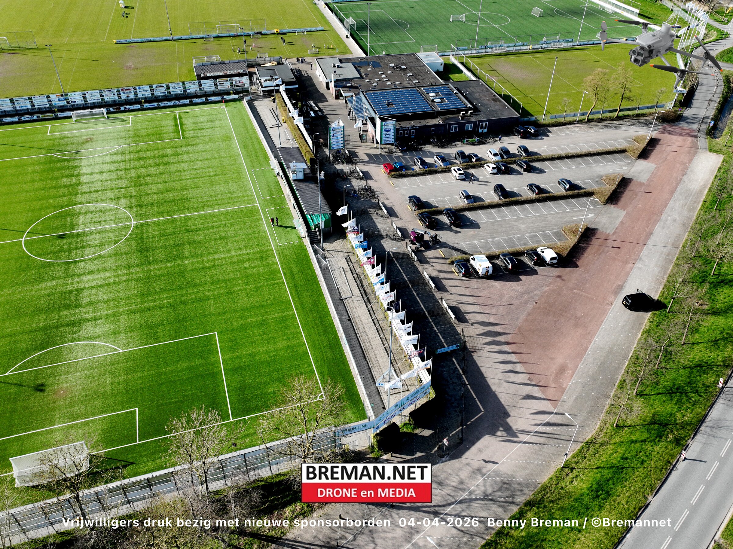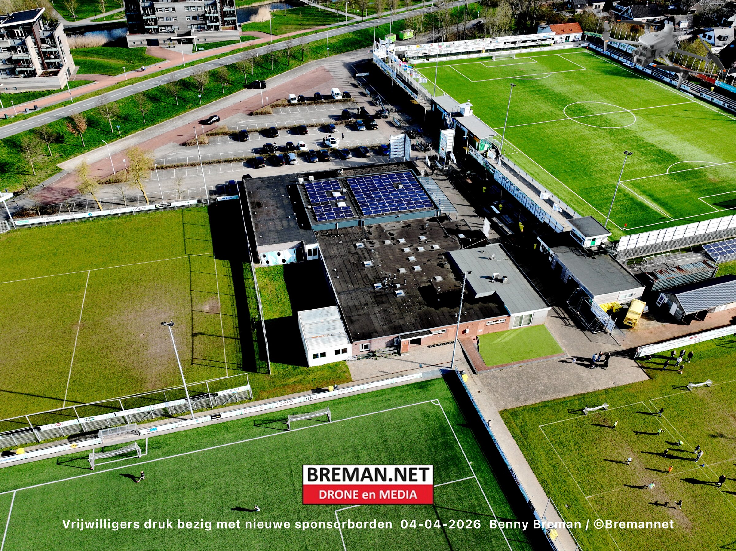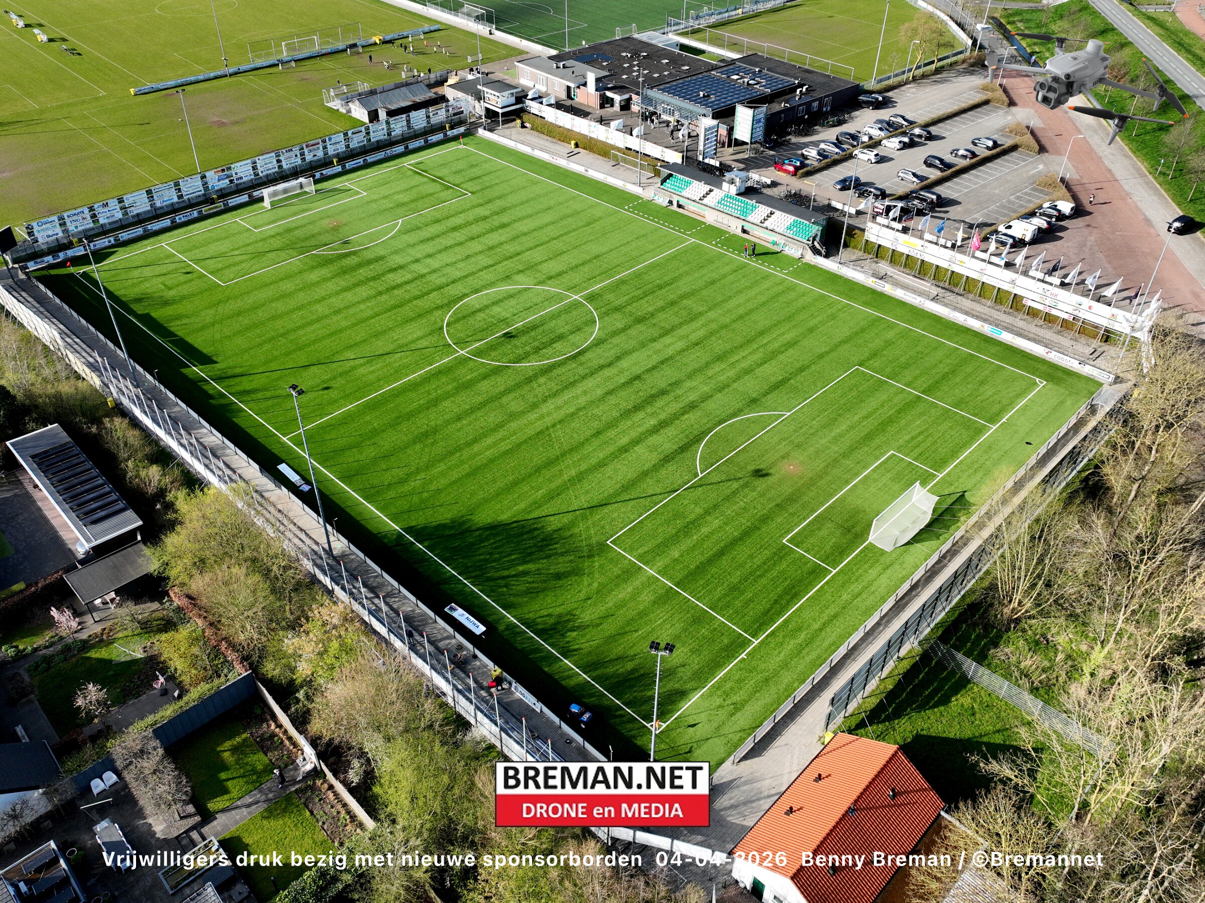 Ophangen sponsorborden bij SC Genemuiden